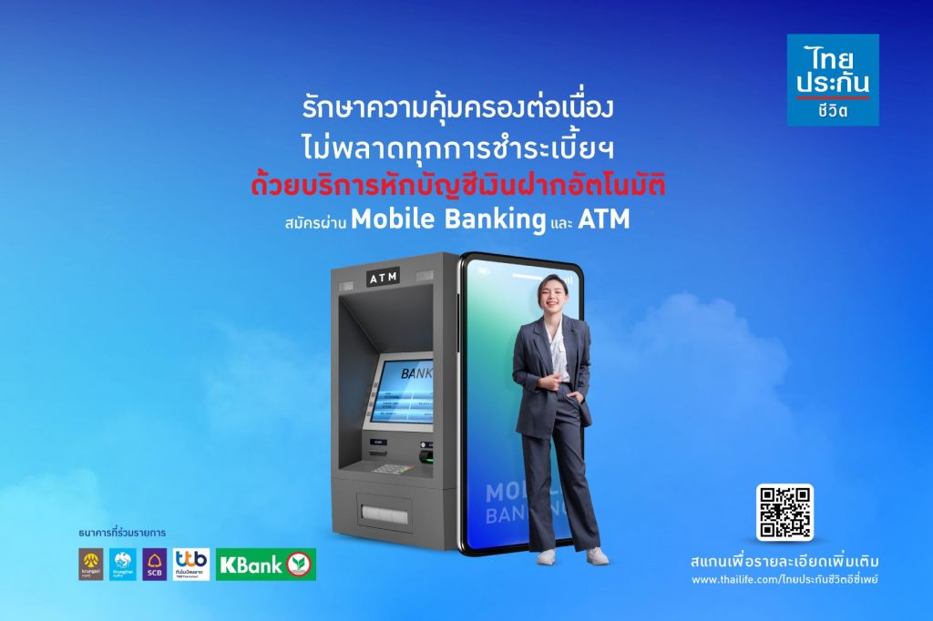 “บริการหักชำระเบี้ยฯ ผ่านบัญชีเงินฝากอัตโนมัติจะช่วยให้ลูกค้าได้รับความคุ้มครองตามกรมธรรม์อย่างต่อเนื่อง และคลายความกังวลเรื่องพลาดการชำระเบี้ยฯ โดยสามารถสมัครรับบริการได้ด้วยตัวเองง่าย ๆ ผ่าน Mobile Banking และ ATM” นายไมเคิลกล่าว