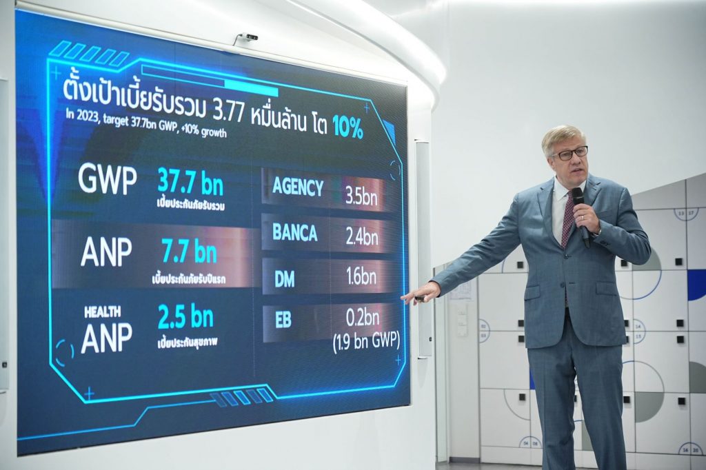 Public : 24/02/2023อลิอันซ์ อยุธยา ประกันชีวิต ตั้งเป้าปี 2566 เติบโต 10% ผ่านทุกช่องขาย โดยเป็นเบี้ยรับปีแรก 7,700 ล้านบาท และเบี้ยรับรวม 3.77 หมื่นล้านบาท หวังก้าวสู่การเป็นผู้นำบริษัทประกันชีวิตและสุขภาพของไทยได้อย่างมั่นคง ส่วนปี 2565 ที่ผ่านผลการดำเนินธุรกิจในภาพรวมเติบโตสูงเหนือตลาด เบี้ยรับปีแรกรายปีเติบโตถึง 15% อยู่ที่ 7,000 ล้านบาท