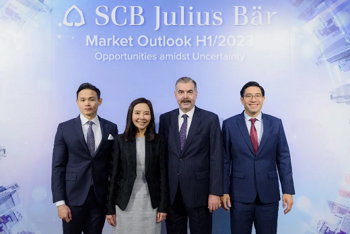 Public : 24/02/2023“บริษัทหลักทรัพย์ ไทยพาณิชย์ จูเลียส แบร์ จำกัด” (ไทยพาณิชย์ จูเลียส แบร์) จัดงานสัมมนาเอ็กซ์คลูซีฟ “มุมมองเศรษฐกิจโลกปี 2566” (Market Outlook 2023) สำหรับลูกค้าที่มีความมั่งคั่งระดับสูง (Ultra High Net Worth Individuals – UHNWIs) นำเสนอถึงปัจจัยสำคัญที่มีผลต่อการลงทุนในปี 2566 ที่จัดทำโดยจูเลียส แบร์ โดยให้มุมมองว่าจะเป็น “The Year of Cool-Down” อัตราการเติบโตทางเศรษฐกิจและอัตราเงินเฟ้อจะอยู่ในทิศทางที่ชะลอลงจากนโยบายการเงินที่ตึงตัว และผลกระทบด้าน Supply chain ที่เกิดจากโรคระบาดใหญ่นั้นใกล้หมดลง คาดเศรษฐกิจโลกในปี 2566 จะเติบโตประมาณ 2% และแม้จะเกิดภาวะเศรษฐกิจถดถอยในสหรัฐอเมริกา แต่อาจจะไม่เกิด Global recession แนะนำลงทุนในตราสารหนี้ภาคเอกชนที่คุณภาพดี