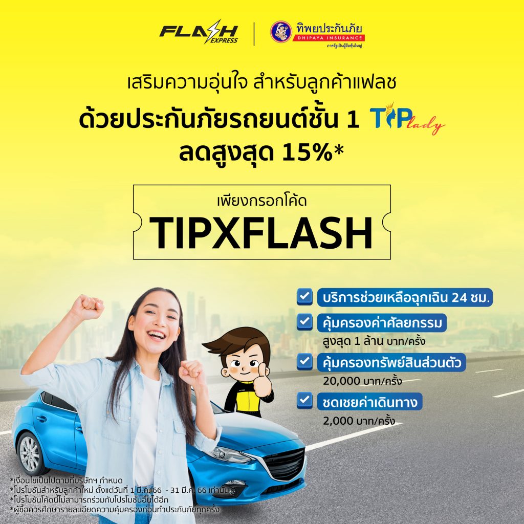ทิพยประกันภัย จับมือ แฟลช เอ็กซ์เพรส มอบโปรโมชันสุดพิเศษ! ส่วนลดประกันภัยสูงสุด 15% พร้อมส่งพัสดุฟรี
