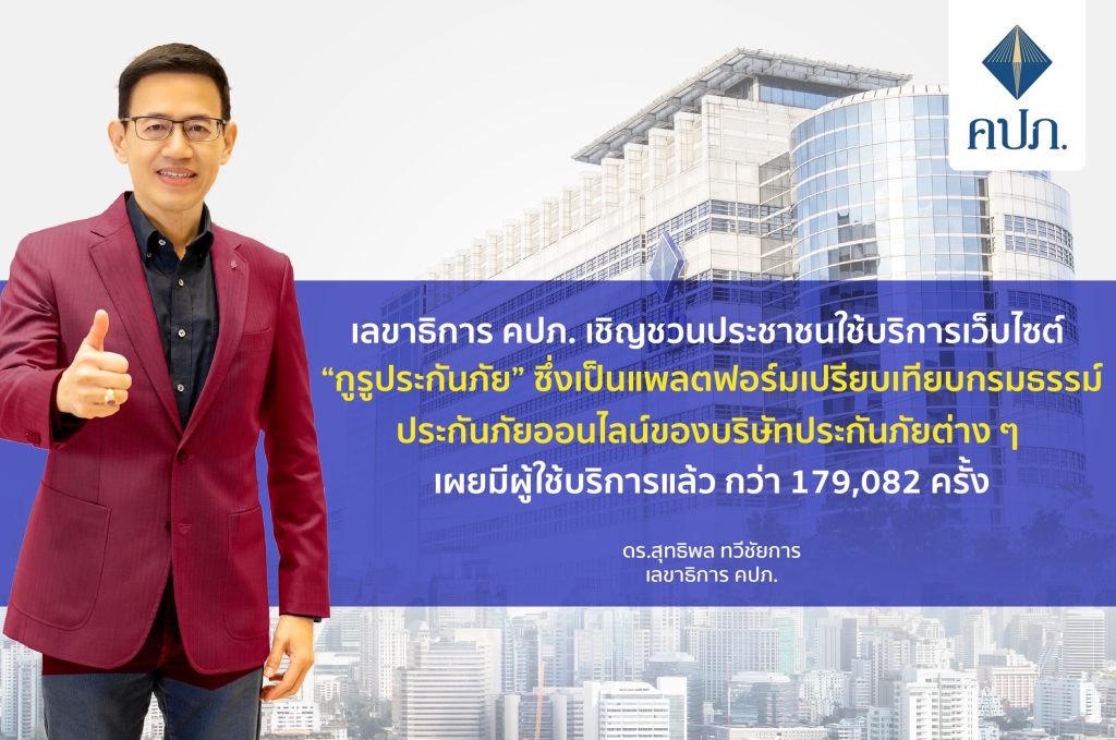 ดร. สุทธิพล ทวีชัยการ เลขาธิการคณะกรรมการกำกับและส่งเสริมการประกอบธุรกิจประกันภัย (เลขาธิการ คปภ.) เปิดเผยว่า สำนักงาน คปภ. ได้มีการปรับตัวให้เข้าสู่ยุค Next Normal อย่างต่อเนื่องด้วยการนำเทคโนโลยีมาใช้ในการดำเนินการทั้งด้านการกำกับและส่งเสริมภาคธุรกิจประกันภัย การคุ้มครองสิทธิประโยชน์ด้านการประกันภัยให้มีความสะดวก รวดเร็ว และง่ายต่อการเข้าถึงข้อมูลผ่านทางเว็บไซต์และการใช้เครือข่ายสังคมออนไลน์ในรูปแบบต่าง ๆ โดยเฉพาะการเข้าถึงข้อมูลการเปรียบเทียบผลิตภัณฑ์ประกันภัยต่าง ๆ เพื่อให้ประชาชนมีทางเลือกและเข้าถึงผลิตภัณฑ์ประกันภัยให้มีความเหมาะสมกับตนเองและครอบครัวอย่างมีประสิทธิภาพยิ่งขึ้น ดังนั้นสำนักงาน คปภ. จึงได้พัฒนาและต่อยอดเว็บไซต์เพื่อเปรียบเทียบผลิตภัณฑ์ประกันภัยภายใต้ชื่อ “กูรูประกันภัย” (https://guruprakanphai.oic.or.th) เพื่อรองรับสังคมไทยที่ก้าวเข้าสู่ยุคเศรษฐกิจดิจิทัล ทำให้เกิดโอกาสทางธุรกิจที่จะเข้าถึงผู้เอาประกันภัยผ่านการทำธุรกรรมทางอิเล็กทรอนิกส์มากขึ้น โดยสำนักงาน คปภ. กำหนดให้บริษัทประกันภัย นายหน้าประกันภัยและธนาคารที่ทำการเสนอขายประกันภัยผ่านทางอิเล็กทรอนิกส์ (Online) ต้องขึ้นทะเบียนกิจกรรมทางอิเล็กทรอนิกส์ เพื่อให้เกิดความมั่นใจว่าระบบสารสนเทศมีความมั่นคงปลอดภัย และต่อมาได้พัฒนาระบบเว็บไซต์เพื่อตรวจสอบการขึ้นทะเบียนผู้ประกอบการที่ขายกรมธรรม์ทางอิเล็กทรอนิกส์ ระบบค้นหาและเปรียบเทียบแบบประกันภัย และระบบการให้ความรู้ความเข้าใจเกี่ยวกับประกันภัยและการทำธุรกรรมอิเล็กทรอนิกส์ที่มีความมั่นคงปลอดภัย ซึ่งทำให้เกิดประโยชน์และเกิดความเชื่อมั่นต่อประชาชนในการทำธุรกรรมประกันภัยผ่านทางอิเล็กทรอนิกส์ โดยเว็บไซต์กูรูประกันภัย นอกจากประชาชนสามารถเข้าไปใช้บริการผ่านทาง https://guruprakanphai.oic.or.th แล้ว ยังสามารถเข้าไปใช้บริการผ่านทางเว็บไซต์ https://www.oic.or.th/th/consumer โดยกด link เข้าไปใน banner กูรูประกันภัยได้อีกทาง โดยไม่มีค่าใช้จ่าย ซึ่งนับตั้งแต่เปิดให้บริการในปี 2563 จนถึงปัจจุบันมีประชาชนเข้าไปใช้บริการเว็บไซต์กูรูประกันภัยแล้ว จำนวนกว่า 179,082 ครั้ง เลขาธิการ คปภ. กล่าวด้วยว่า เว็บไซต์กูรูประกันภัย ถือเป็นช่องทางสำคัญในการเข้าถึงข้อมูลการเปรียบเทียบ ผลิตภัณฑ์ประกันภัยต่าง ๆ ประกอบด้วย 3 ระบบ คือ ระบบแรก ตรวจสอบการขึ้นทะเบียนผู้ประกอบการที่ขายกรมธรรม์ทางอิเล็กทรอนิกส์ เพื่อเสริมสร้างความเชื่อมั่นให้แก่ประชาชนที่สนใจซื้อผลิตภัณฑ์ประกันภัยผ่านทางระบบอิเล็กทรอนิกส์ สามารถตรวจสอบรายชื่อบริษัทประ