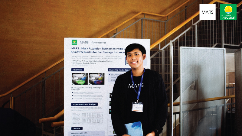 บริษัท มอเตอร์ เอไอ เรคอกนิชั่น โซลูชั่น จำกัด หรือ “MARS” Deep Tech Startup บริษัทในเครือ บริษัท ประกันภัยไทยวิวัฒน์ จำกัด (มหาชน) ผู้นำนวัตกรรมด้านการประกันภัย และผู้พลิกโฉมอุตสาหกรรมประกันภัยไทยด้วยประกันรถเปิดปิด จ่ายตามที่ขับจริง ช่วยประหยัดสูงสุดถึง 80% สตาร์ตอัปหนึ่งเดียวในภูมิภาคเอเชีย นำโดย ดร.ธีรพงศ์ ปานบุญยืน AI/ML Senior Team Lead ในฐานะหัวหน้าทีม MARS Artificial Intelligence Laboratory (MARSAIL) ได้รับเกียรติเชิญเข้าร่วมแชร์ไอเดียเทคนิคสุดยอดนวัตกรรมประกันภัยไทยสู่สายตาโลก กับเทคนิคการนำเทคโนโลยี AI มาใช้เพื่อการตรวจจับความเสียหายของรถยนต์ งานประชุมเชิงวิชาการ International Conference on Image Analysis and Processing (ICIAP2023) ณ เมืองอูดิเน ประเทศอิตาลี ซึ่งเป็นงานประชุมที่คัดสรรผลงานด้านการพัฒนาเทคโนโลยีรวมถึงนวัตกรรมด้าน AI มาเพื่อเผยแพร่และนำเสนอสู่สายตาชาวโลก