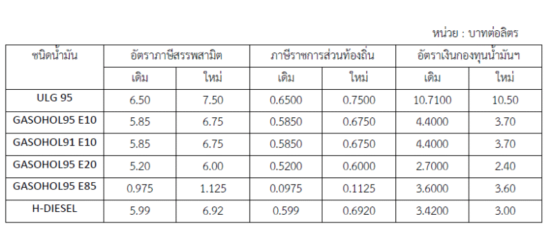 Public : 07/05/2025เมื่อวันที่ 6 พฤษภาคม 2568 คณะกรรมการบริหารกองทุนน้ำมันเชื้อเพลิง (กบน.) มีมติเห็นชอบให้ปรับอัตราเงินส่งเข้ากองทุนน้ำมันเชื้อเพลิงประเภทน้ำมัน เพื่อรองรับการปรับขึ้นอัตราภาษีสรรพสามิตสินค้าน้ำมันและผลิตภัณฑ์น้ำมัน ประเภทน้ำมันเบนซิน และน้ำมันดีเซล โดยมีเป้าหมายไม่ให้ราคาขายปลีกน้ำมันหน้าสถานีบริการปรับขึ้น เพื่อช่วยเหลือค่าครองชีพของประชาชนในช่วงที่เศรษฐกิจยังไม่ฟื้นตัว