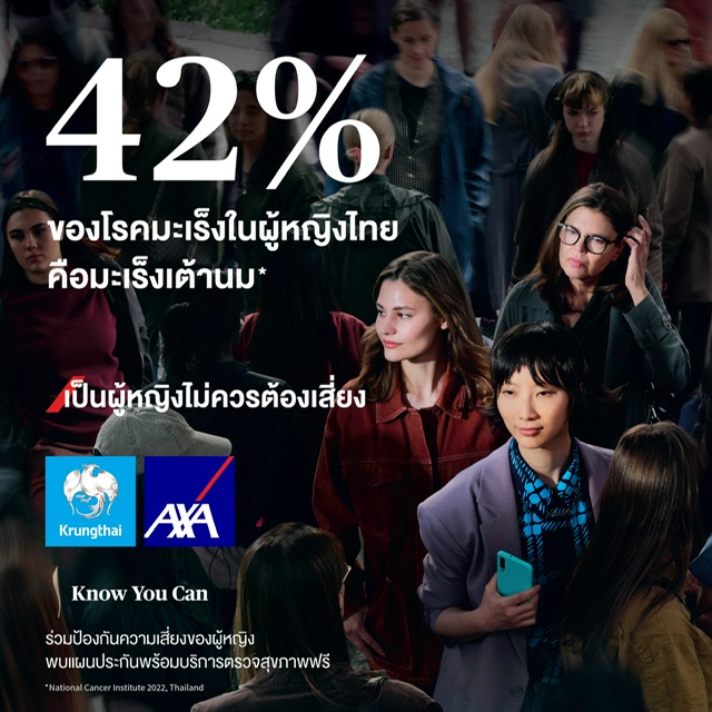 บมจ.กรุงไทย-แอกซ่า ประกันชีวิต นำโดย คุณบุปผาวดี โอวรารินท์ ประธานเจ้าหน้าที่บริหาร ฝ่ายการตลาด ตอกย้ำจุดยืนผู้นำบริษัทประกันชีวิตและสุขภาพ สานต่อแคมเปญโฆษณาระดับโลก “เป็นผู้หญิงไม่ควรต้องเสี่ยง” ปีที่ 2 ซึ่งเป็นแคมเปญระยะยาวที่นำเสนอประเด็นความเสี่ยงในมิติต่างๆ เนื่องจากปัจจุบันโลกของเรากำลังเผชิญกับความเสี่ยงมากมาย ซึ่งล้วนแล้วแต่ส่งผลกระทบต่อเราทุกคน โดยปี 2568 นี้ บริษัทฯ ได้มุ่งเน้นความเสี่ยงด้านสุขภาพผู้หญิงต่อเนื่องเป็นปีที่ 2 เนื่องจากผู้หญิงมักเป็นกลุ่มที่ได้รับผลกระทบจากความเสี่ยงมากกว่า และในปัจจุบันผู้หญิงต้องรับบทบาทและดูแลสิ่งต่างๆ มากมายจนละเลยการดูแลตัวเอง โดยเฉพาะเรื่องสุขภาพ จากผลสำรวจจากสถาบันมะเร็งแห่งชาติพบว่า 41% ของผู้หญิงไม่ได้ตรวจสุขภาพในช่วง 12 เดือนที่ผ่านมา และ 42 % ของโรคร้ายที่หญิงไทยต้องเผชิญ คือโรคมะเร็งเต้านม นอกจากนั้นจากผลสำรวจยังพบว่า ผู้หญิงไทยจำนวนมาก ไม่เคยตรวจคัดกรองมะเร็งเต้านม