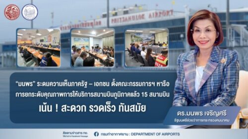 Public : 20/07/2025นางมนพร เจริญศรี รมช.คมนาคม เปิดเผยถึงความคืบหน้าการดำเนินงานตามแนวทางการพัฒนาการให้บริการท่าอากาศยานในสังกัดกรมท่าอากาศยาน (ทย.) ที่ได้สั่งการให้ ทย. แต่งตั้งคณะกรรมการพัฒนาการให้บริการท่าอากาศยาน ในทุกจังหวัดที่มีท่าอากาศยานในสังกัดของ ทย. เพื่อยกระดับคุณภาพการให้บริการผู้โดยสาร ประชาชน และผู้มีส่วนได้ส่วนเสียของ ทย. ทุกกลุ่ม รวมทั้งส่งเสริมการมีส่วนร่วมของชุมชนด้วยการเปิดโอกาสให้ภาคประชาชนและหน่วยงานในพื้นที่ แสดงข้อคิดเห็นและทำความเข้าใจถึงประโยชน์ที่จะได้รับจากการพัฒนาการให้บริการของท่าอากาศยาน ตามหลักเกณฑ์และวิธีการบริหารกิจการบ้านเมืองที่ดี ซึ่งจะทำให้การดำเนินการตามภารกิจของ ทย. บรรลุตามวัตถุประสงค์ของกระทรวงคมนาคม