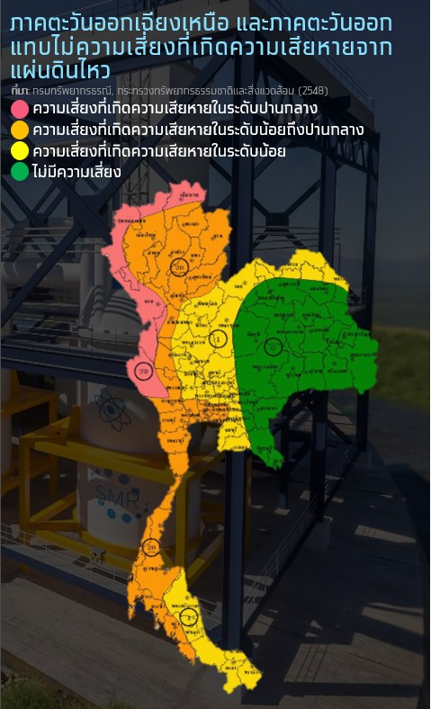4) ออกแบบ SMR ให้มีระบบตัดไฟฟ้าและต้านทานแผ่นดินไหว รวมทั้งมีอาคารที่ใช้กักเก็บกากกัมมันตรังสีเพื่อป้องกันความเสียหายของ SMR และการรั่วไหลสารกัมมันตรังสี 5)ลงทุนก่อสร้างแหล่งเก็บกากกัมมันตรังสีใต้พื้นดินอย่างถาวรในบริเวณที่ไม่มีรอยเลื่อนที่ยังเคลื่อนไหวและมีชั้นหินเก่าแก่ที่มั่นคงเพื่อให้มั่นใจได้ว่าสามารถกักเก็บกากกัมมันตรังสีที่ทิ้งจาก SMR ได้อย่างปลอดภัย
