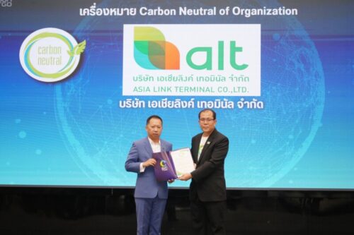 ทั้งนี้ บีซีพีจี โดยคุณสมหญิง ปัญญาชีวิตา ผู้อำนวยการฝ่ายยุทธศาสตร์องค์กร และ เอเชียลิงค์ เทอร์มินัล โดยคุณเสรี น้าวัฒนไพบูลย์ ผู้จัดการทั่วไป เข้ารับมอบประกาศนียบัตร “เครื่องหมายคาร์บอนนิวทรัล ประเภทองค์กร” ในงานพิธีมอบประกาศนียบัตรเครื่องหมายรับรองฉลากคาร์บอน จัดโดย องค์การบริหารจัดการก๊าซเรือนกระจก (องค์การมหาชน) ณ ห้อง Conference Hall สถาบันเพื่อการยุติธรรมแห่งประเทศไทย (TIJ) ถนนแจ้งวัฒนะ โดยมี นายณกรณ์ ตรรกวิรพัท ผู้อำนวยการองค์การบริหารจัดการก๊าซเรือนกระจก เป็นประธานในพิธี