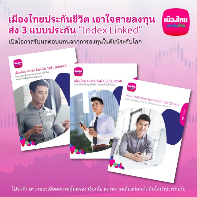 เมืองไทยประกันชีวิต ส่ง 3 แบบประกัน “Index Linkedเปิดโอกาสรับผลตอบแทนจากการลงทุนในดัชนีระดับโลกพร้อมอุ่นใจด้วยความคุ้มครองชีวิต เบี้ยประกันไม่หาย การันตีเงินคืน