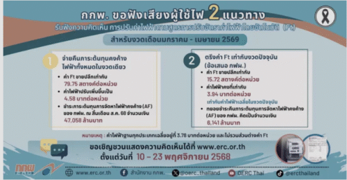 อย่างไรก็ตาม กกพ.เปิดรับฟังความคิดเห็นผ่านทางเว็บไซต์สำนักงาน กกพ. ตั้งแต่วันที่ 10-23 พ.ย.2568 ก่อนที่จะมีการสรุปและประกาศอย่างเป็นทางการต่อไป