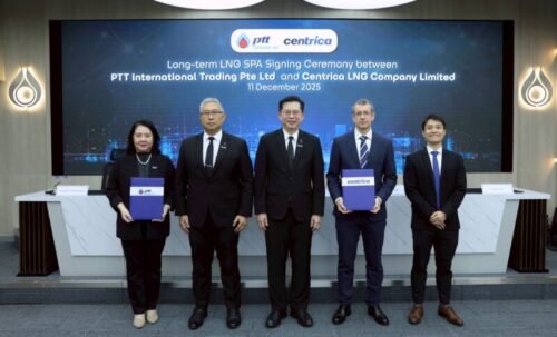 Public : 19/12/2025PTT International Trading Pte Ltd (PTTT) และ Centrica LNG Company Limited (Centrica) ลงนามในสัญญา LNG Sale and Purchase Agreement (SPA) สำหรับการซื้อขายก๊าซธรรมชาติเหลว (LNG) ระยะยาว ตามกรอบความร่วมมือในข้อตกลงเบื้องต้น (Heads of Agreement : HoA) ที่ลงนามเมื่อเดือนมิถุนายน 2568 ที่ผ่านมา โดยมี นายจตุรงค์ วรวิทย์สุรวัฒนา รองกรรมการผู้จัดการใหญ่หน่วยธุรกิจการค้าระหว่างประเทศ บริษัท ปตท. จำกัด (มหาชน) (ปตท.) (กลาง) นางธนันต์พร ตั้งพิทักษ์กุล รักษาการกรรมการผู้จัดการ PTTT (ซ้าย) นายไวธยางค์ กุลละวณิชย์ ผู้ช่วยกรรมการผู้จัดการใหญ่การค้าระหว่างประเทศกลุ่มผลิตภัณฑ์ปิโตรเลียมขั้นต้นและกิจการต่างประเทศ ปตท. (ที่ 2 จากซ้าย) และ Mr. Arturo Gallego, Executive Vice President, Global Head of LNG, Centrica (ที่ 2 จากขวา) ร่วมพิธี