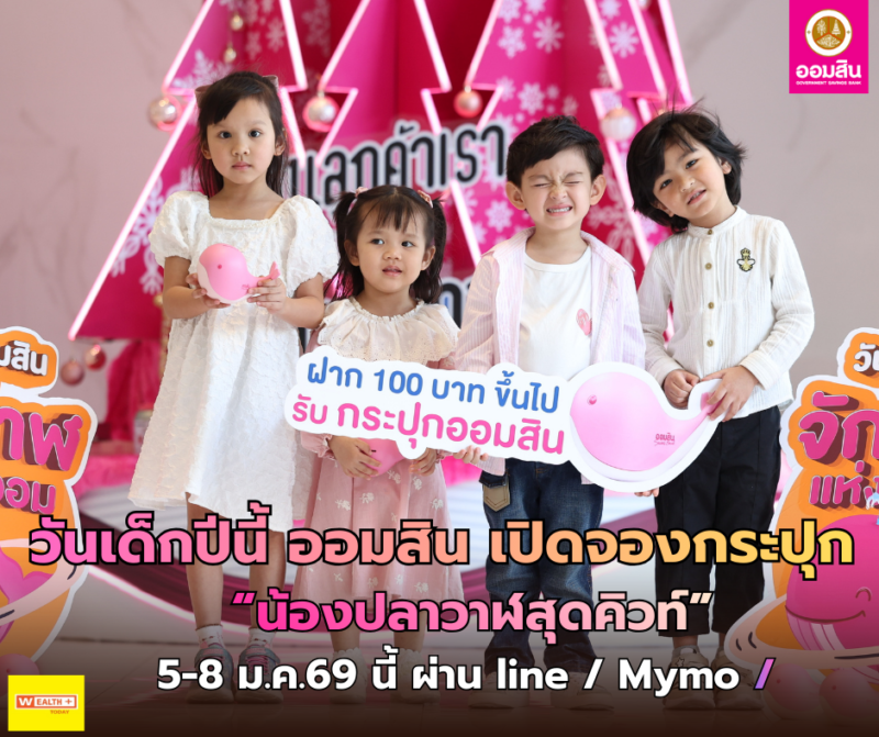 วันเด็กปีนี้ ออมสินแจกกระปุกน้องปลาวาฬสุดคิ้วท์ เพียงฝากเงินขั้นต่ำ 100 บาท เปิดจองสิทธิ์ 5–8 ม.ค. 69 ผ่านเว็บไซต์/LINE/MyMo ของออมสิน