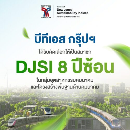 บีทีเอส กรุ๊ปฯ ได้รับคัดเลือกให้เป็นสมาชิกดัชนีความยั่งยืนดาวโจนส์ “DJSI” ต่อเนื่องเป็นปีที่ 8