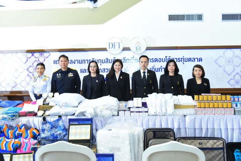Public : 04/03/2026นายพันธ์ทอง ลอยกุลนันท์ อธิบดีกรมศุลกากร และนางอารดา เฟื่องทอง อธิบดีกรมการค้าต่างประเทศ ร่วมแถลงผลงานการจับกุมสินค้าหลีกเลี่ยงอากรตอบโต้การทุ่มตลาด และสินค้าสวมสิทธิ์ปลอมแปลงถิ่นกำเนิด ตั้งแต่ต้นปีงบประมาณ 2569 มูลค่าความเสียหายกว่า 503 ล้านบาท