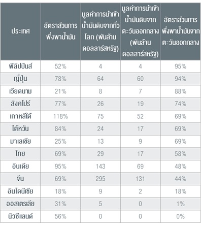 สูงสุดในขณะนี้ สำหรับประเทศไทยของเราเองก็มีความน่ากังวลไม่แพ้กัน เพราะตัวเลขระบุว่าเรามีสัดส่วนการพึ่งพาน้ำมันสูงถึง 69% และเป็นการนำเข้าน้ำมันดิบจากตะวันออกกลางเกือบ 60% เลยทีเดียว