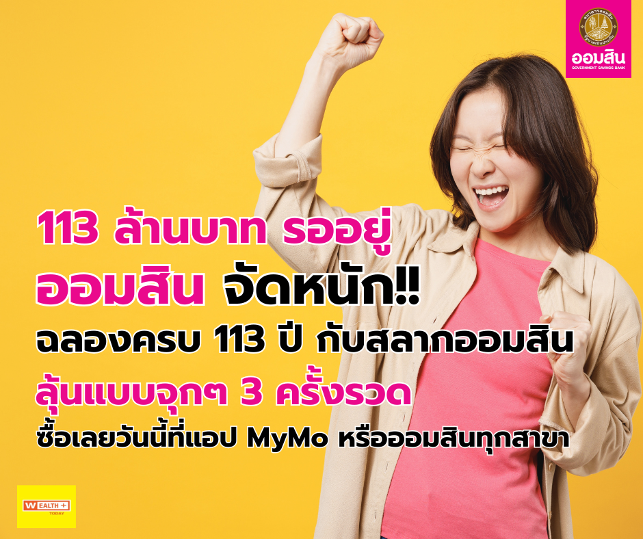 ฉลอง 113 ปี เพิ่มรางวัลพิเศษรวม 113 ล้าน! ซื้อสลากออมสินวันนี้ ได้ลุ้นโชคใหญ่ 3 ครั้งรวด ยิ่งซื้อยิ่งได้ลุ้น ซื้อเลยวันนี้ที่ MyMo หรือออมสินทุกสาขา
