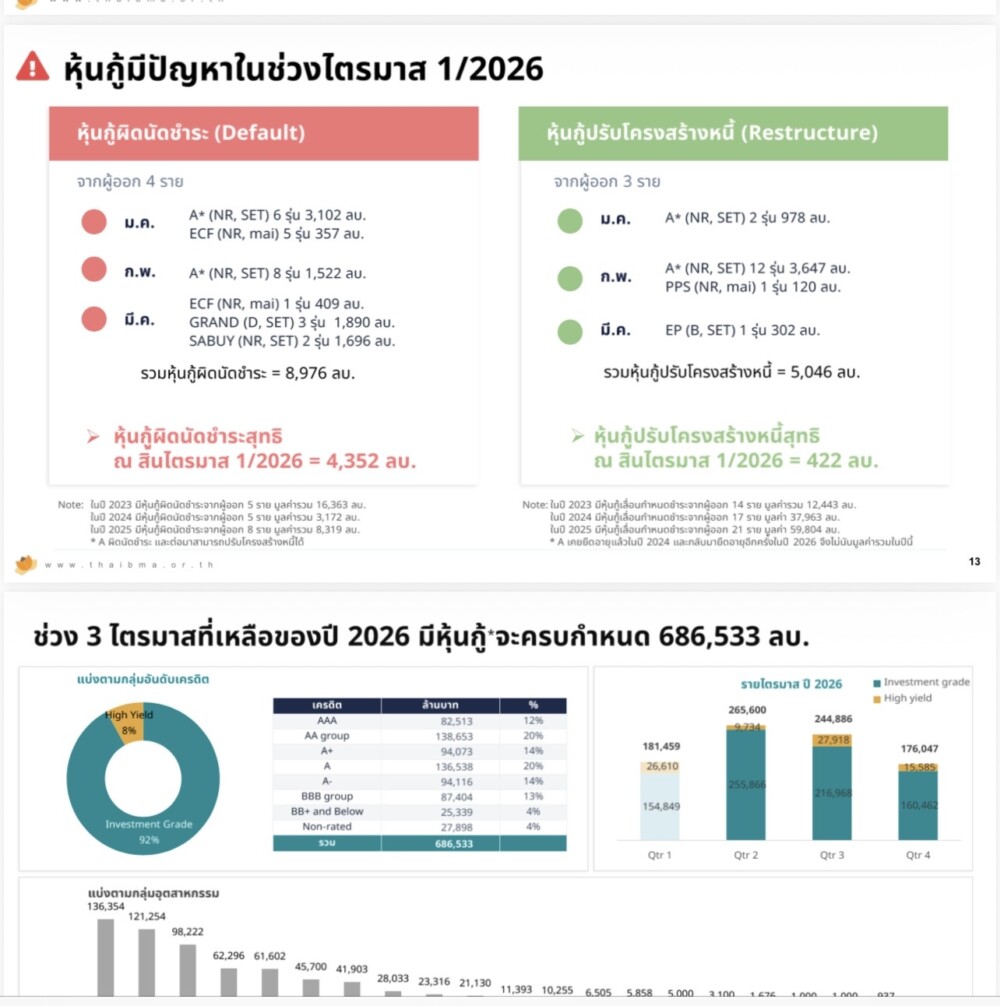 Public : 03/04/2026“สงคราม”ป่วนบอนด์ยีลพุ่ง!! เอกชนชะลอออกหุ้นกู้ ไตรมาสแรก ขายแค่ 1.71แสนล้านลดลง 15.5% เทียบปีก่อน -ผิดนัดชำระเพิ่ม!!