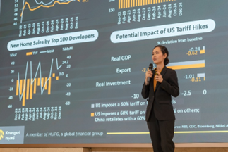 งานสัมมนาครั้งนี้ ได้รับเกียรติจากผู้เชี่ยวชาญด้านเศรษฐกิจและการลงทุนของกรุงศรี และพันธมิตร เริ่มต้นด้วยภาพรวมเศรษฐกิจโลกและเศรษฐกิจไทย โดย ดร.พิมพ์นารา หิรัญกสิ หัวหน้าทีมวิจัยเศรษฐกิจ และผู้บริหารสายงานวิจัย ธนาคารกรุงศรีอยุธยา จำกัด (มหาชน) สรุปใจความสำคัญว่า เศรษฐกิจโลกปี 2025 มีแนวโน้มเติบโตสูงกว่าปีก่อนหน้า แต่ยังคงต่ำกว่าค่าเฉลี่ยช่วงก่อนเกิด COVID โดยมีปัจจัยสำคัญประกอบไปด้วย 1) Artificial Intelligence (AI) 2) Policies ทั้งนโยบายการคลังและการเงิน และ 3) นโยบายของประธานาธิบดีโดนัลด์ ทรัมป์ สำหรับภาพรวมเศรษฐกิจของสหรัฐฯ การขยายตัวของเศรษฐกิจเริ่มชะลอความร้อนแรงลง สะท้อนผ่านการจ้างงานนอกภาคการเกษตรที่มีอัตราการเติบโตลดลง โดยประเด็นความเสี่ยงที่ต้องติดตามคือการลดลงของดัชนีความเชื่อมั่นของผู้บริโภค ซึ่งสะท้อนถึงความกังวลของผู้บริโภคที่เพิ่มขึ้น และอัตราการยื่นขอล้มละลายที่มากสุดในรอบ 14 ปี ขณะที่นโยบายของทรัมป์ยังไม่ได้ชัดเจนมากนัก จึงมองว่าธนาคารกลางสหรัฐฯ หรือ FED จะสามารถลดอัตราดอกเบี้ยประมาณ 2-3 ครั้ง อย่างค่อยเป็นค่อยไป ทั้งนี้ หากพิจารณาในแง่ของนโยบายการขึ้นกำแพงภาษี วิจัยกรุงศรีประเมินว่าสหรัฐฯ จะได้รับผลกระทบเชิงลบมากที่สุด ขณะที่ผลกระทบต่อไทยมีทั้งเชิงบวกอย่างอุตสาหกรรมคอมพิวเตอร์ และเชิงลบอย่างกลุ่มเคมีภัณฑ์ อย่างไรก็ตาม มองว่าการดำเนินนโยบายด้านภาษีเป็นเครื่องมือกดดันต่างประเทศ โดยคาดหวังการเจรจาประเด็นด้านอื่นๆ มากกว่า